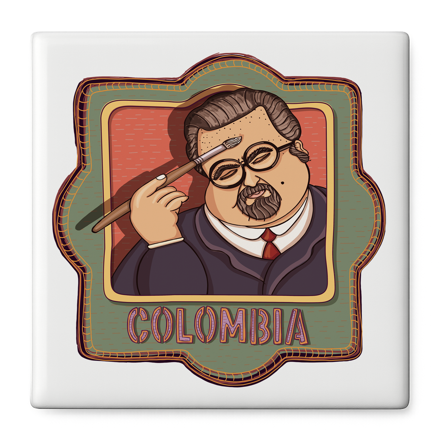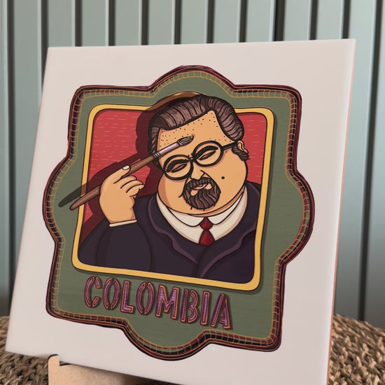 Este azulejo decorativo captura el estilo inconfundible de Fernando Botero, el artista colombiano más reconocido internacionalmente. Una ilustración original hecha a mano que celebra las formas voluptuosas y el humor característico del maestro. El souvenir perfecto de Colombia para llevar el arte colombiano a cualquier rincón del mundo.