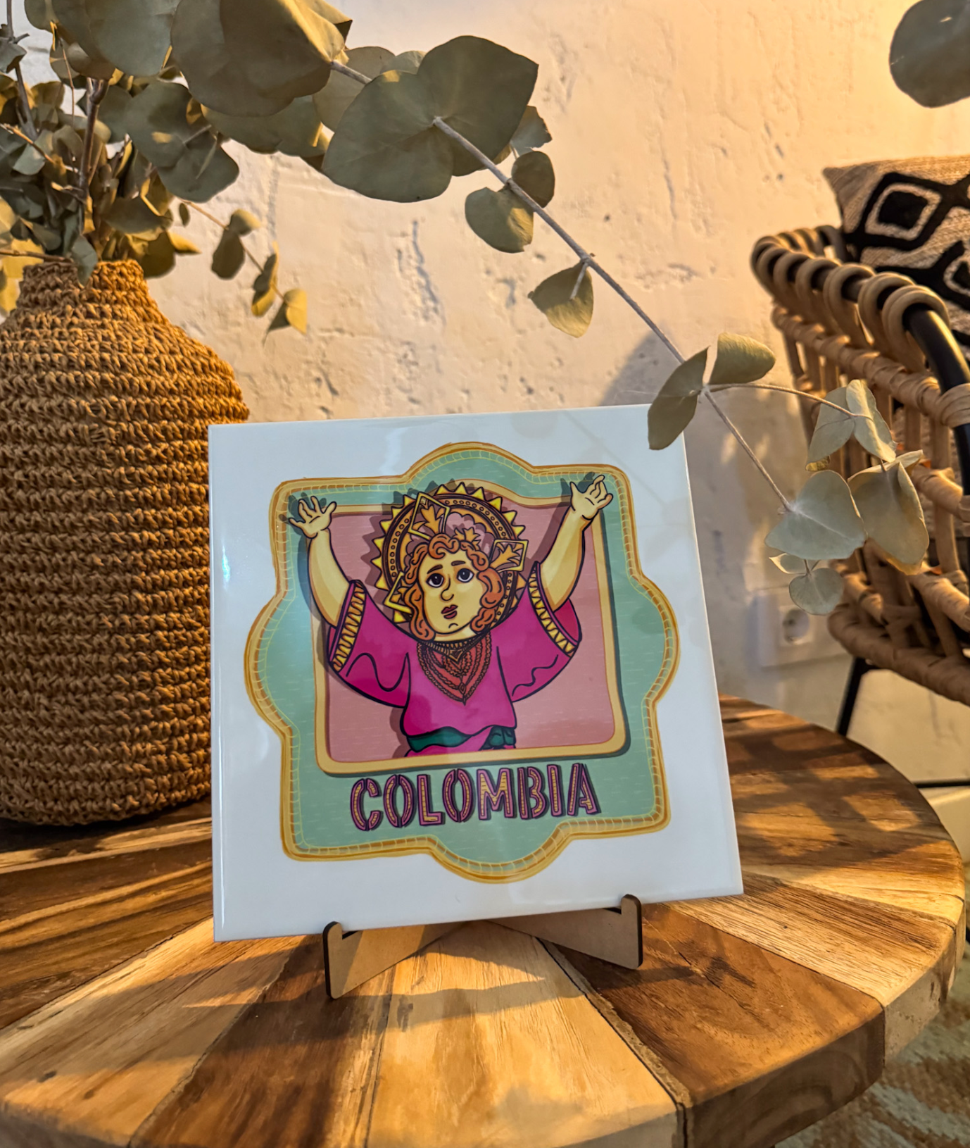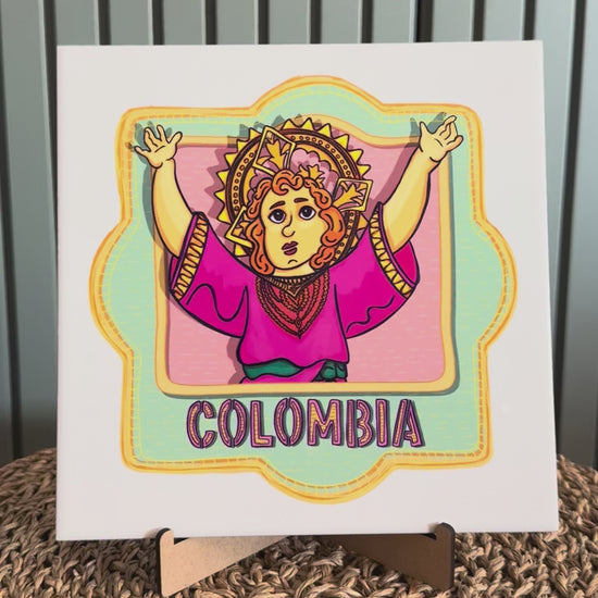 El Divino Niño Jesús es uno de los símbolos religiosos más queridos en Colombia. Este azulejo decorativo captura la devoción y ternura de esta imagen icónica con una ilustración original hecha a mano. El souvenir espiritual perfecto para llevar la fe colombiana contigo.