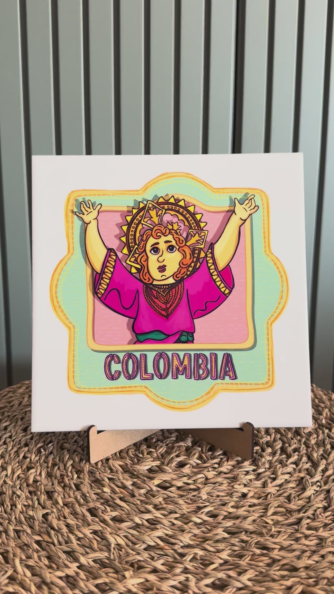 Cada trazo está dibujado con respeto y cariño, preservando la esencia de esta imagen tan especial para los colombianos. Más que un souvenir, es una pieza que conecta con la fe y las tradiciones de casa.