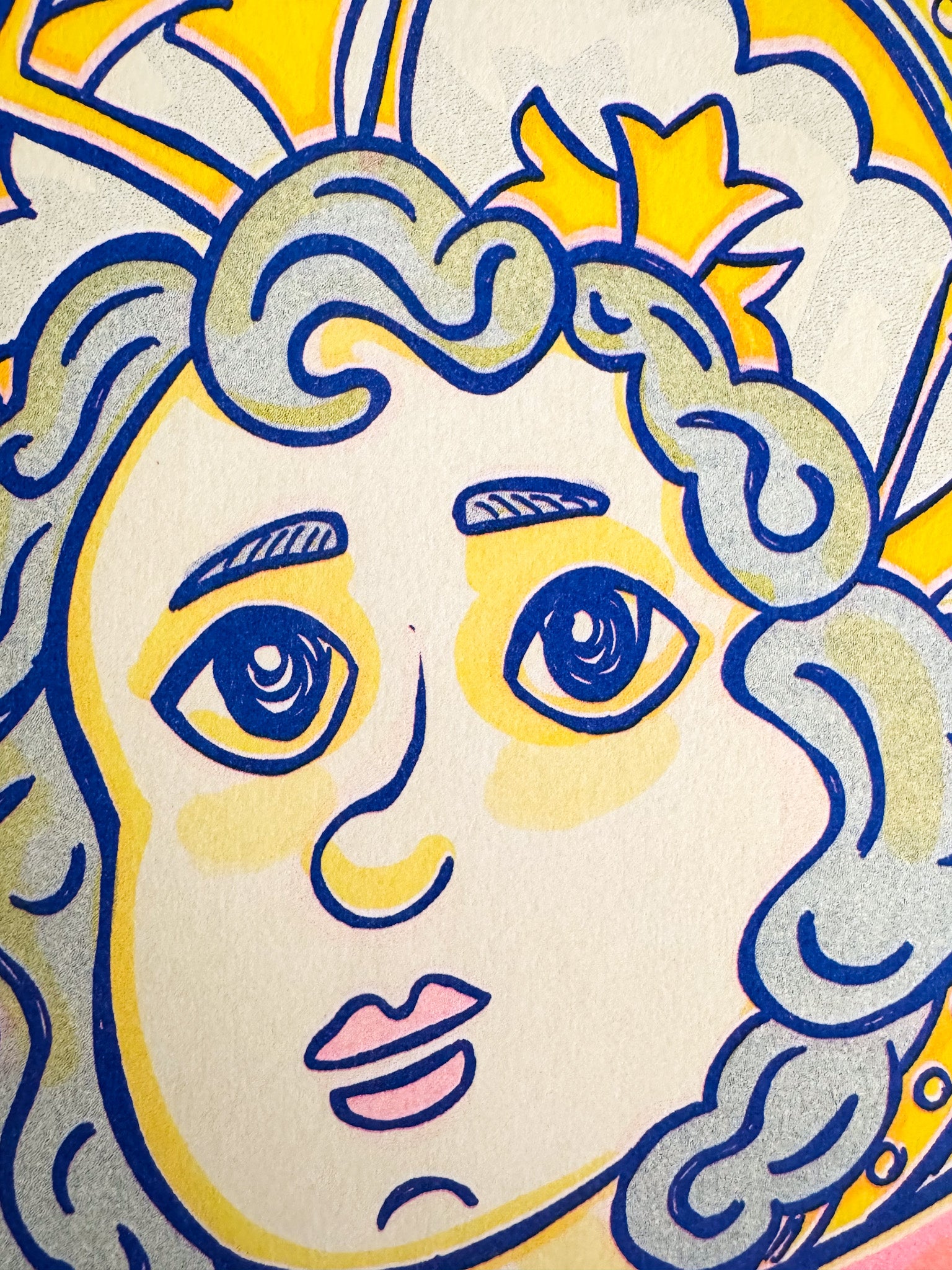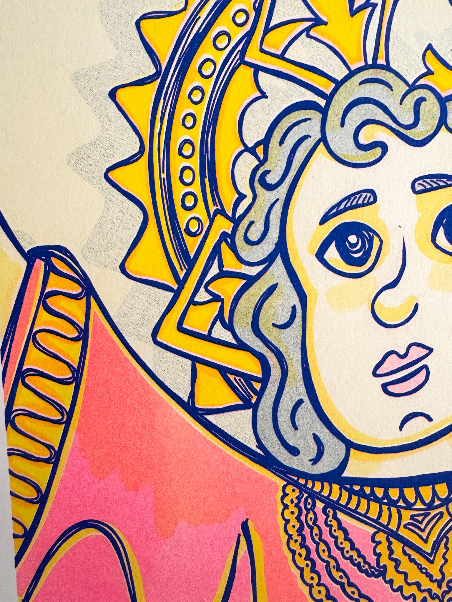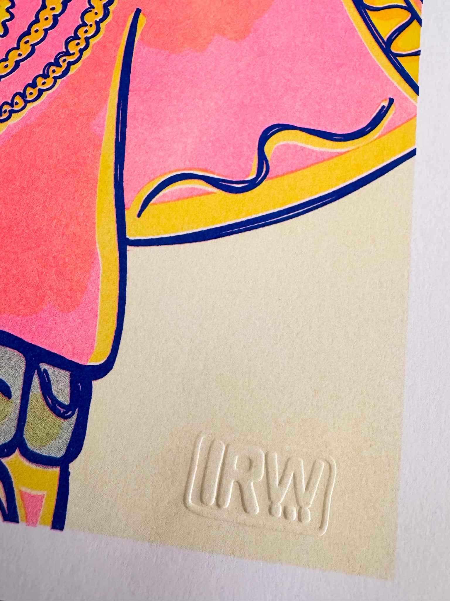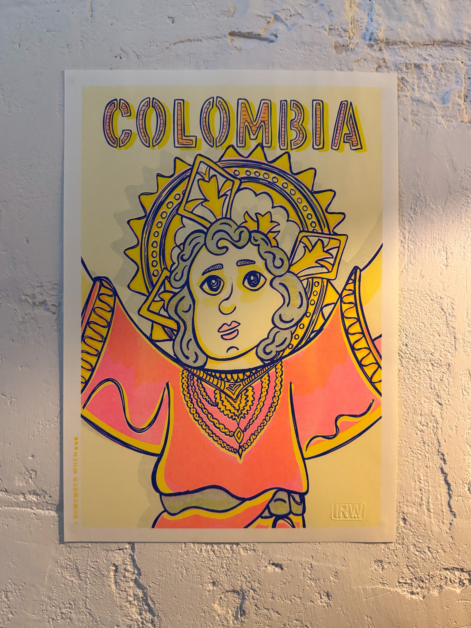 Esta risografía del Divino Niño Jesús combina la tradición religiosa colombiana con la técnica artística de impresión risográfica. Una pieza de edición limitada que captura la devoción con un estilo contemporáneo y vibrante. Un souvenir de colección de Colombia.
