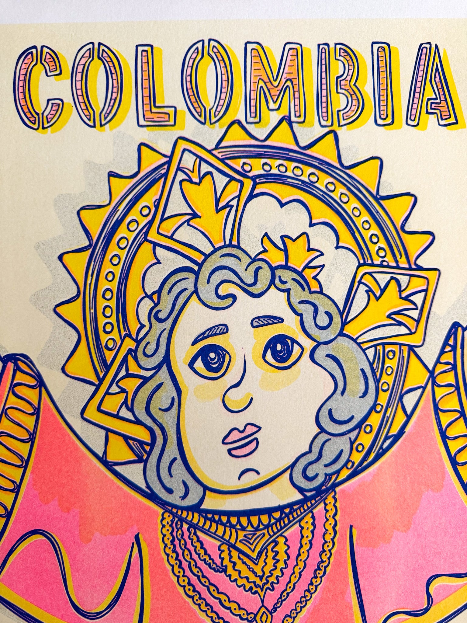 La risografía es una técnica de impresión japonesa que crea texturas únicas y colores vibrantes. Cada impresión tiene pequeñas variaciones que la hacen especial, combinando lo artesanal con lo contemporáneo. Un auténtico design souvenir de Colombia.