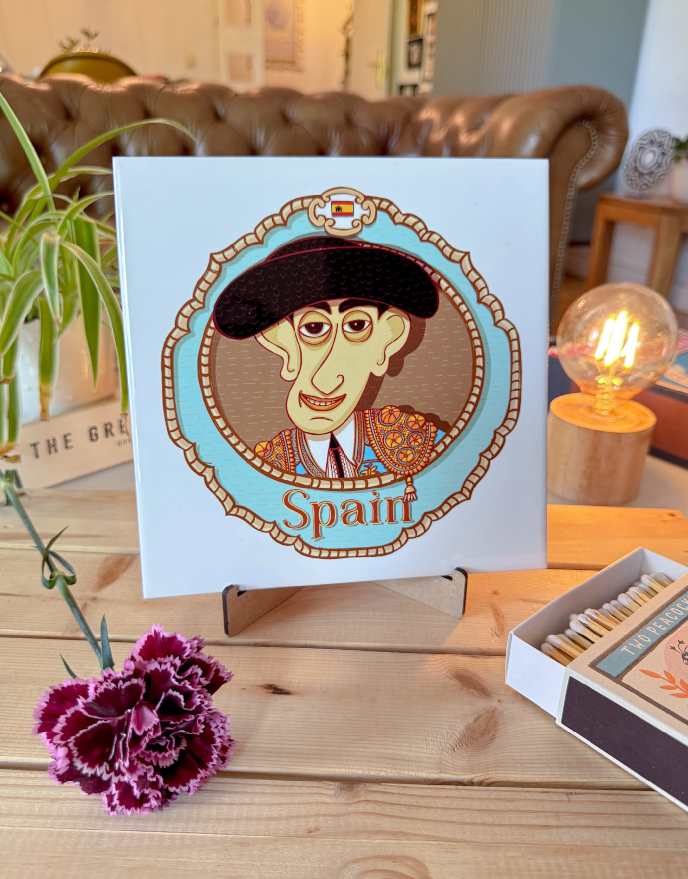 Este azulejo decorativo captura la esencia de Manolete, el torero más legendario de España. Una ilustración original hecha a mano que celebra la tradición taurina española. El souvenir taurino perfecto de España.